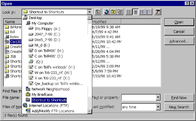 C:\My Documents\Customers\Acme\June1999. You can create a shortcut to this location by right-clicking the folder and selecting "Create Shortcut." This is also an option when you right drag a folder to a different location on the disc. Double-clicking this shortcut opens Explorer at that folder.I create a folder on my desktop to hold shortcuts to folders. Now, I can immediately open a frequently-used folder without having to drill down into my disc structure. Any window that shows the disc tree will have the your folder of shortcuts right there at the bottom of the list of the desktop contents. The great thing is that you can click a folder shortcut from any dialog that shows folders and it will take you to your destination.